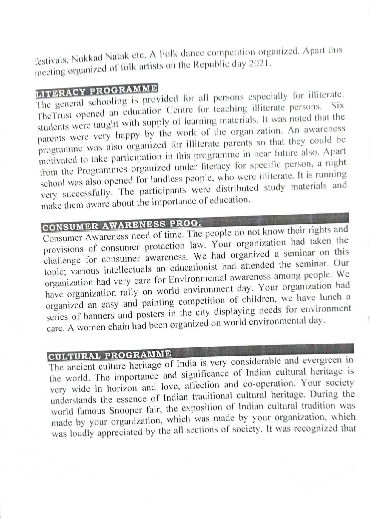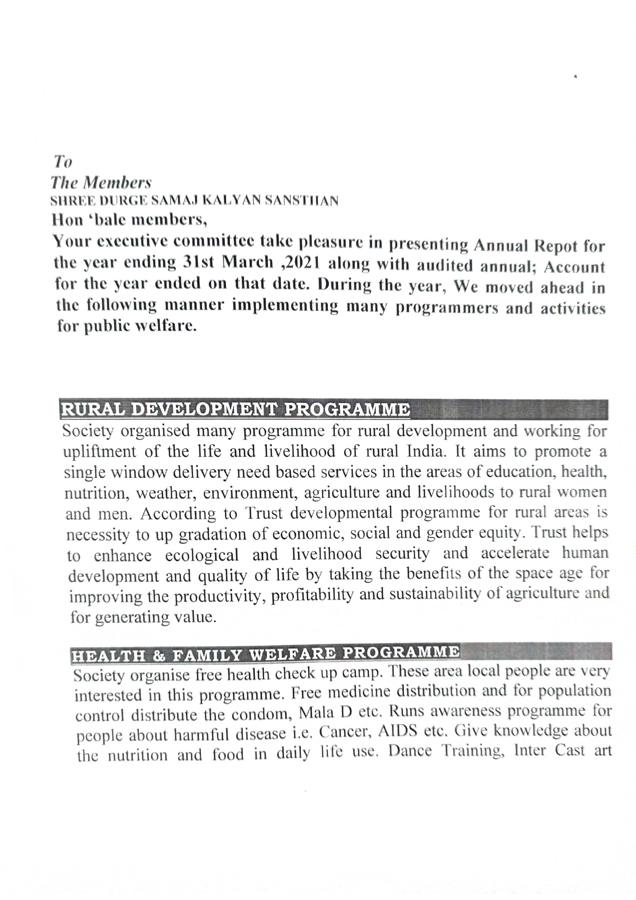 of Sri Durge Samaj Kalyan Sansthan Year 2020